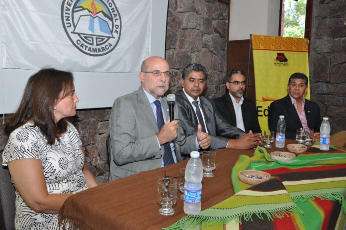 “Queremos que la Universidad sea tierra fértil para todos los catamarqueños y no lo vamos a lograr si no tenemos presencia en el interior.” Así se expresaba el rector de la Universidad Nacional de Catamarca, Ing. Flavio Fama ante el auditorio que se convocó este miércoles en el Hostería de Belén.Allí se efectuó la firma del Convenio de Colaboración Recíproca por el cual se implementa el CCC en Letras (dictado por la facultad de Humanidades) y se reafirmó el convenio firmado el año pasado por el Ciclo Básico de la licenciatura en Patrimonio Cultural (dictada por la Escuela de Arqueología). En este tipo de convenios se acuerda también la la colaboración mutua en materia de capacitación laboral y transferencia tecnológica.