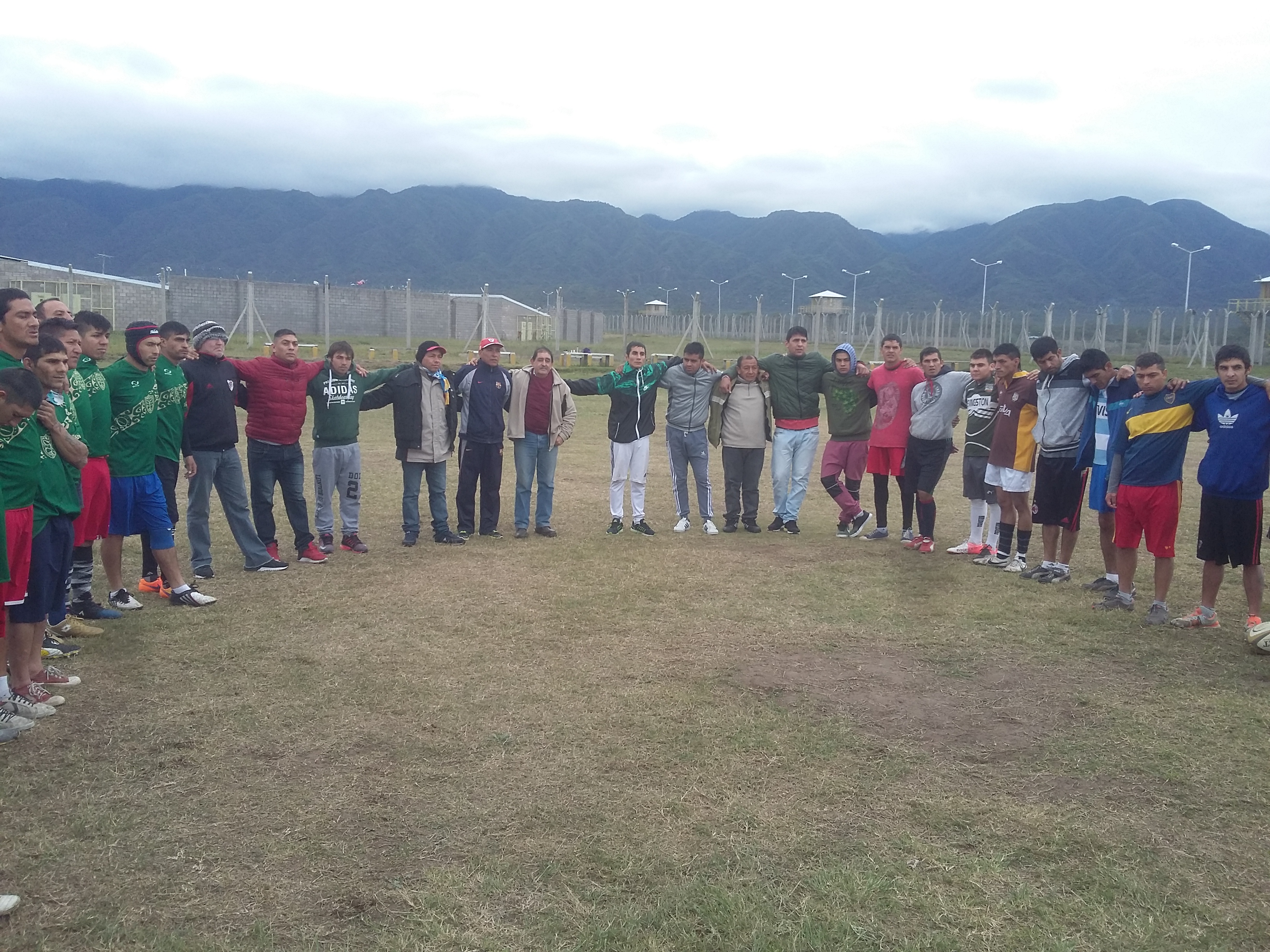 La semana del aniversario empezó con una misa en el interior del penal, donde participaron todos los internos que conforman el plantel de los Awkas. Luego las actividades continuaron en el campo de juego, con una entrada en calor y un partido entre los propios jugadores.