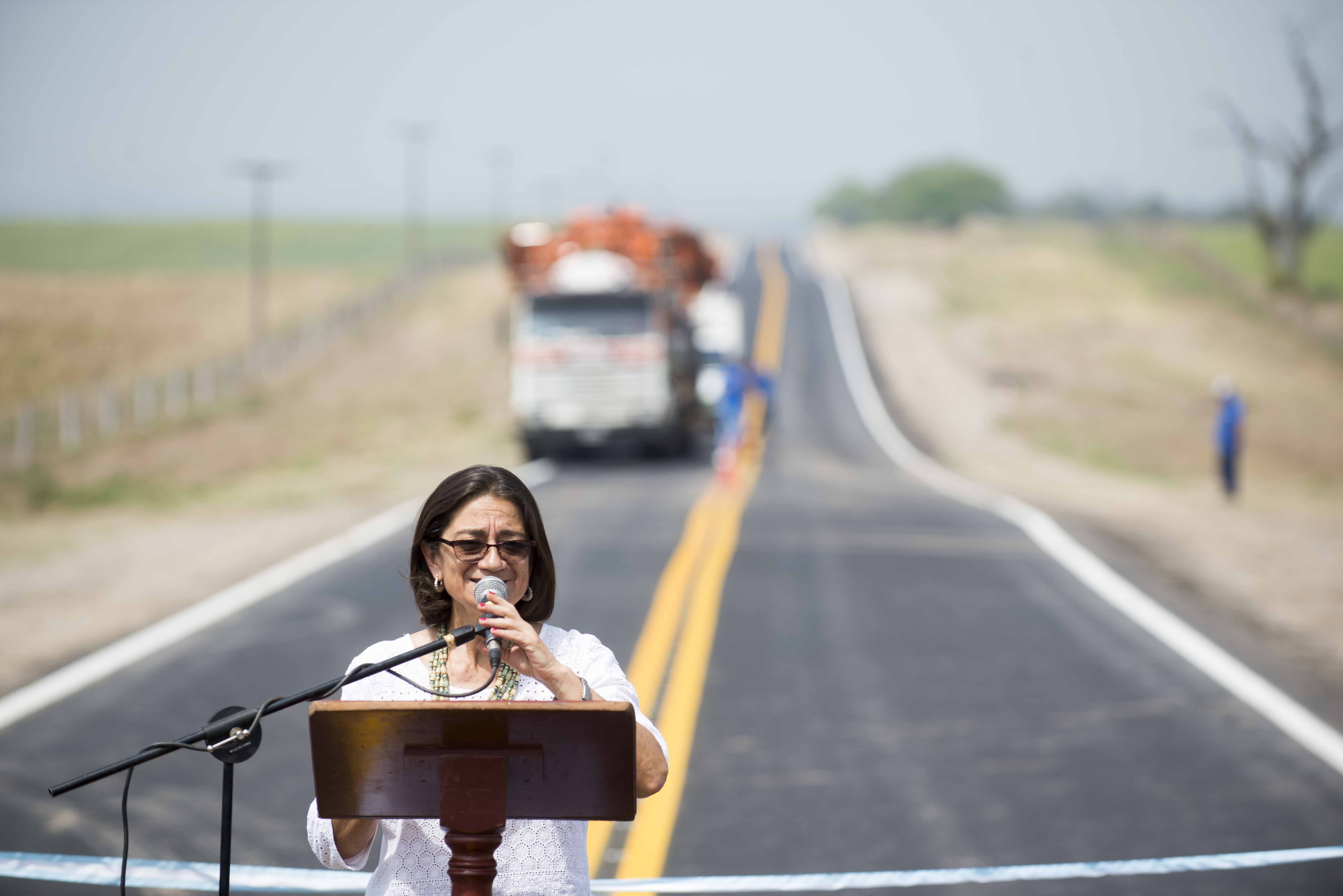 La acompañaron el ministro de Obras Públicas. Rubén Dusso; de Gobierno, Marcelo Rivera; de Producción, Daniel Zelarayan; el presidente de EC Sapem, Raúl Barot; el Administrador de Vialidad Provincial, René Aragón: el intendente de Santa Rosa, Rafael Olveira; de la Capital, Raúl Jalil; de La Cocha, Leopoldo Rodríguez.