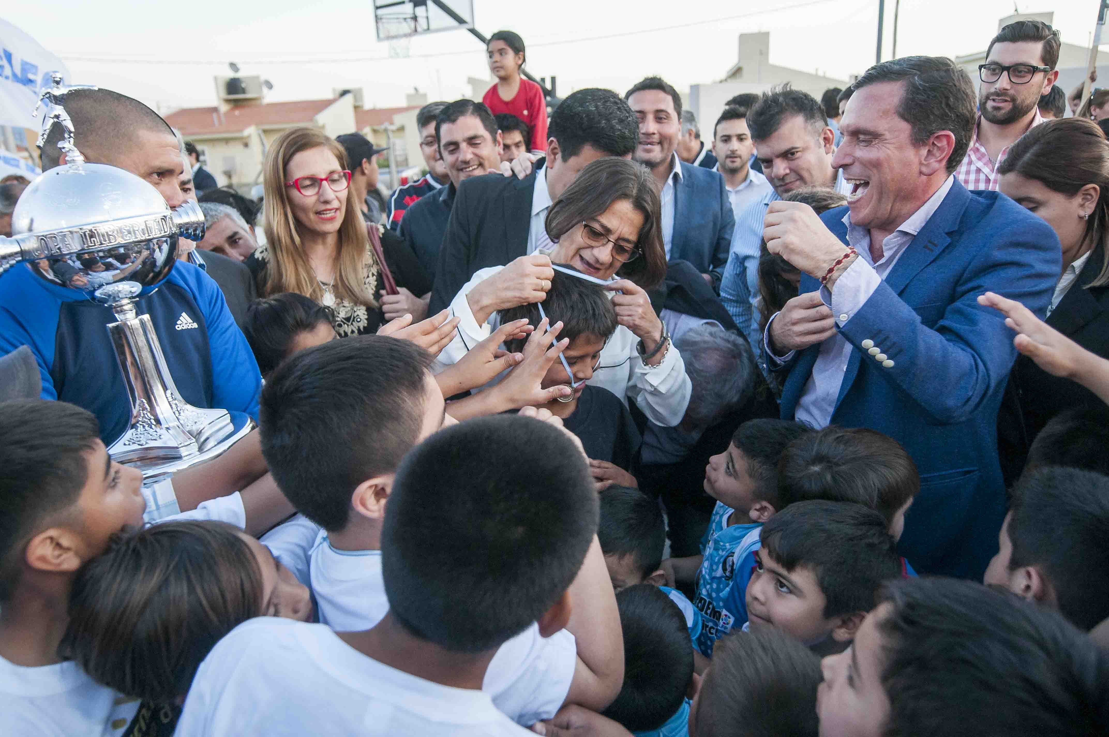 Para mí hoy es un día muy especial, yo digo que uno a lo largo de las gestiones de Gobierno inaugura muchas cosas, todas son importantes, todas tienen un impacto. Pero inaugurar obras para poner en valor la condición humana me parece que es muy especial. Toda esta zona va a tener acá, en este lugar, un espacio de encuentro en donde yo me imagino dentro de un tiempo las mujeres haciendo gimnasia, o las mujeres haciendo música, o las mujeres haciendo un taller de cerámica o esas cosas que nos gustan hacer a las mujeres. Me imagino los chicos de la mañana a la noche en el playón deportivo jugando, me imagino que acá podamos abrir en momentos complejos a que los chicos estén mejor alimentados, para todos los niños de esta zona; muchos de los cuales tienen dificultades para llevar un plato de comida todos los días a su casa. Yo tengo esa mirada de la gente haciendo de esto una extensión de su casa, un lugar que lo vivan como propio, no quiero que lo sientan como que es un espacio del Gobierno, quiero que sientan que esta es también es su casa.