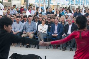 La mandataria fue recibida por el Secretario de la Vivienda y Desarrollo Urbano, Fidel Sáenz y estuvo acompañada por el ministro de Obras Públicas, Rubén Dusso; el ministro de Desarrollo Social, Eduardo Menecier; el ministro de Educación, Daniel Gutierrez; el ministro de Hacienda, Sebastián Veliz; el Diputado Nacional, Gustavo Saadi; legisladores provinciales y funcionarios del Poder Ejecutivo.