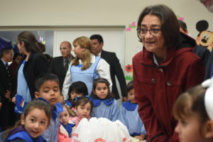 La Gobernadora Lucía Corpacci inauguró en la mañana de hoy, el nuevo edificio del jardín de infantes de la Unidad Institucional N° 1 ubicada en Ribera del Valle. Con esta obra se completa la “unidad” que ya cuenta con el edificio de los niveles primarios y secundarios, que beneficia a niños y jóvenes del sector sur de la Capital