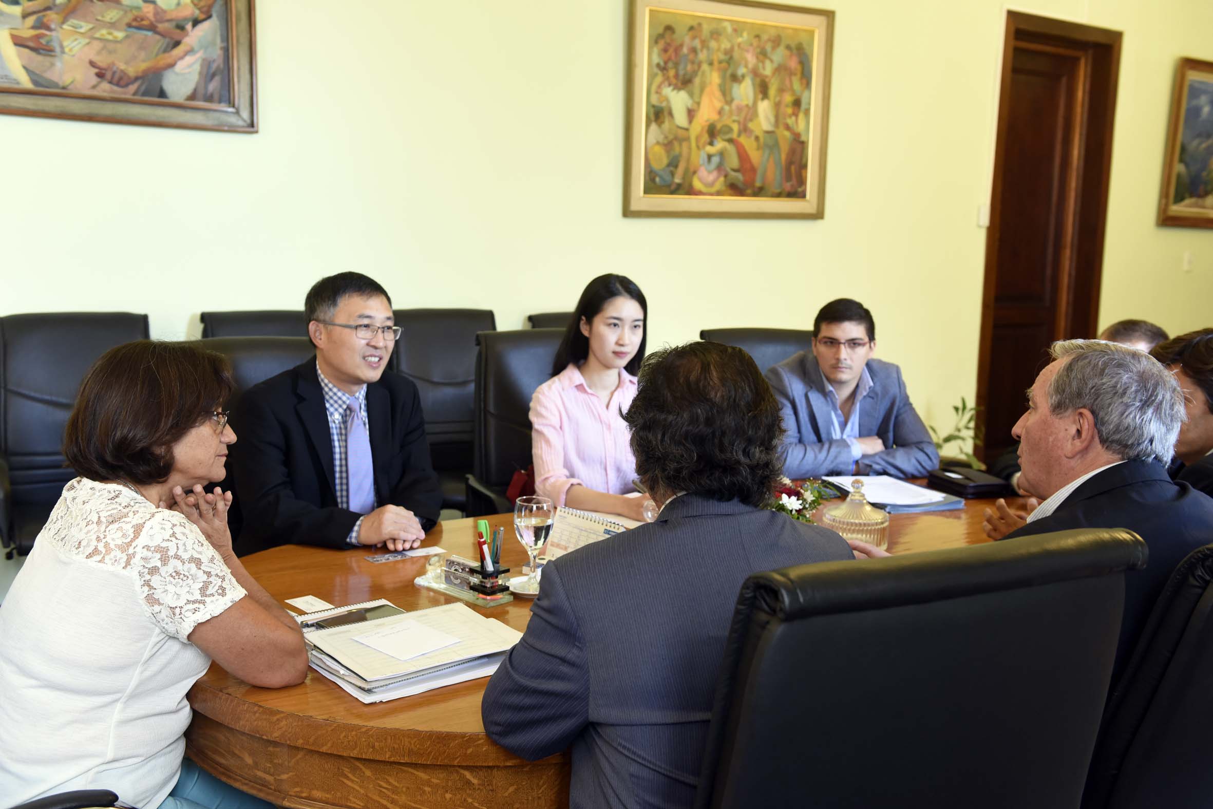 La gobernadora Lucía Corpacci recibió ayer en su despacho de Casa de Gobierno al Consejero Económico y Comercial de la Embajada China, Zhai Chengyu y a la agregada Comercial, Lyu Jiewen.