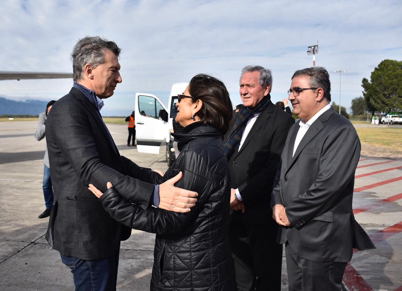 La Gobernadora de Catamarca, Lucía Corpacci, recibió en Aeropuerto Felipe Varela al Presidente de la Nación, Mauricio Macri en su visita a la provincia de Catamarca para inaugurar la Ruta Provincial N° 46 tramo Andalgalá – Belén.