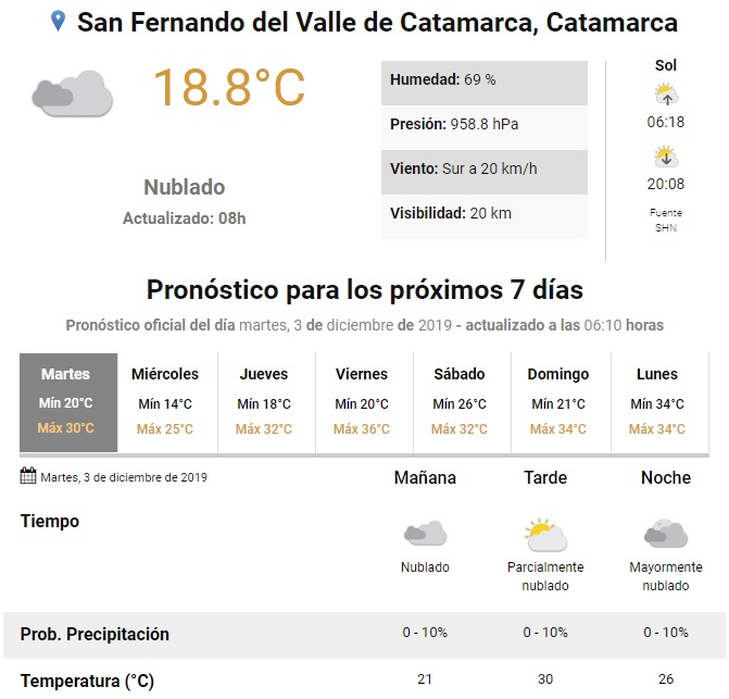 El Tiempo en Catamarca