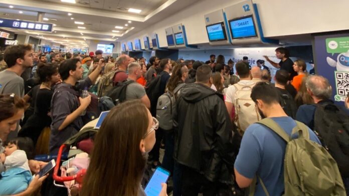 La medida se inició a las 15 del lunes cuando el personal inició una asamblea reclamando la incorporación al gremio de los empleados de la empresa Swissport, que presta el servicio de mostradores y asistencia a JetSmart y Latam y continuaba esta mañana, a pesar de que el Ministerio de Trabajo dictó la conciliación obligatoria, que no fue acatada por el sindicato.