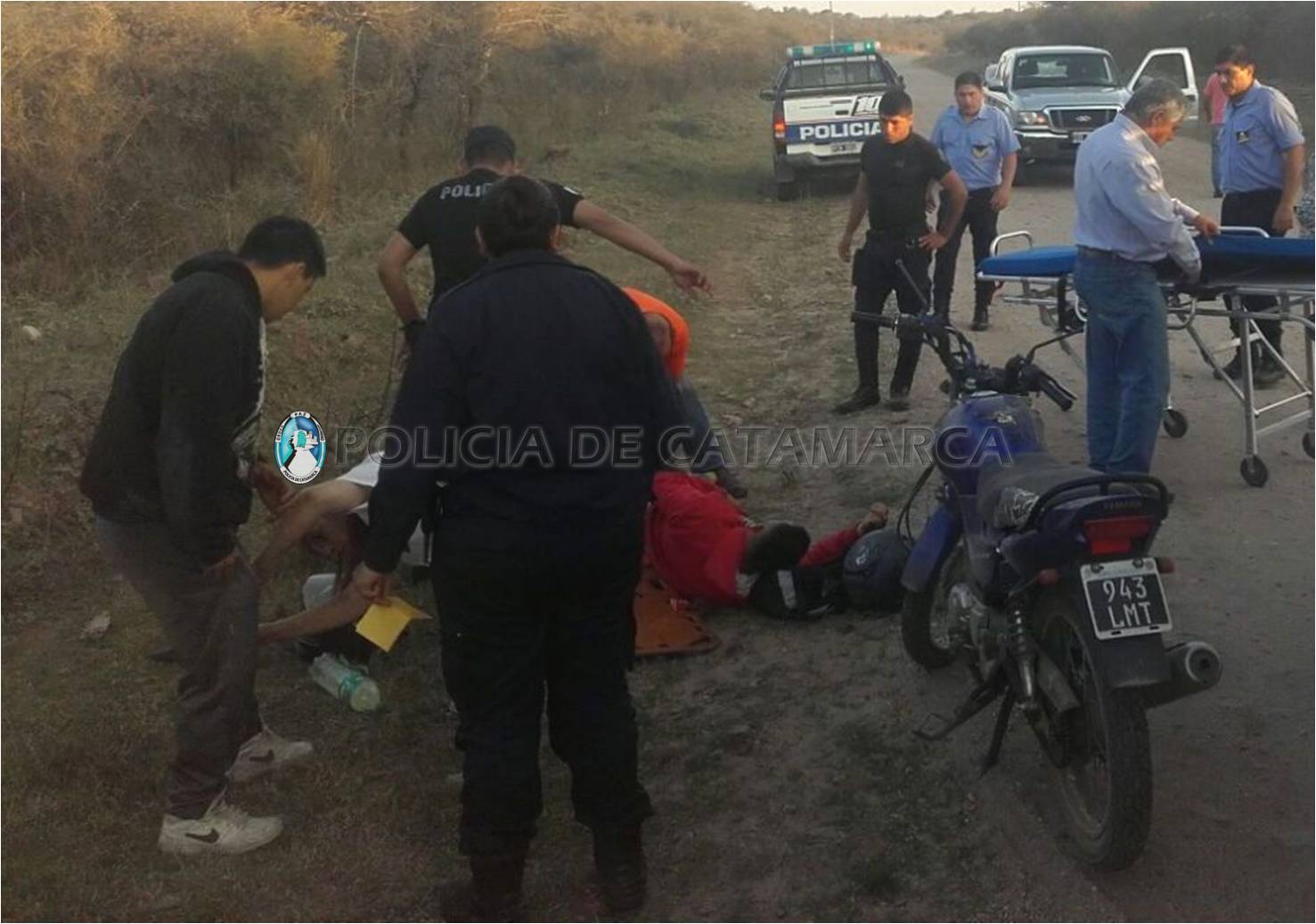Diego Armando Montoya (20), circulaba al mando de una motocicleta marca Yamaha YBR 125 cc., dominio 943-LMT, de color azul, en compañía de Juan Aníbal Montoya (35), y por motivos que se investigan perdió el control de rodado y cayeron a la cinta asfáltica, sufriendo lesiones que demandaron la asistencia de facultativos médicos del hospital zonal, por lo que intervinieron efectivos de la Comisaría Departamental de Ancasti, para labrar las actuaciones de rigor bajo las directivas de la Fiscalía de Instrucciones en turno.