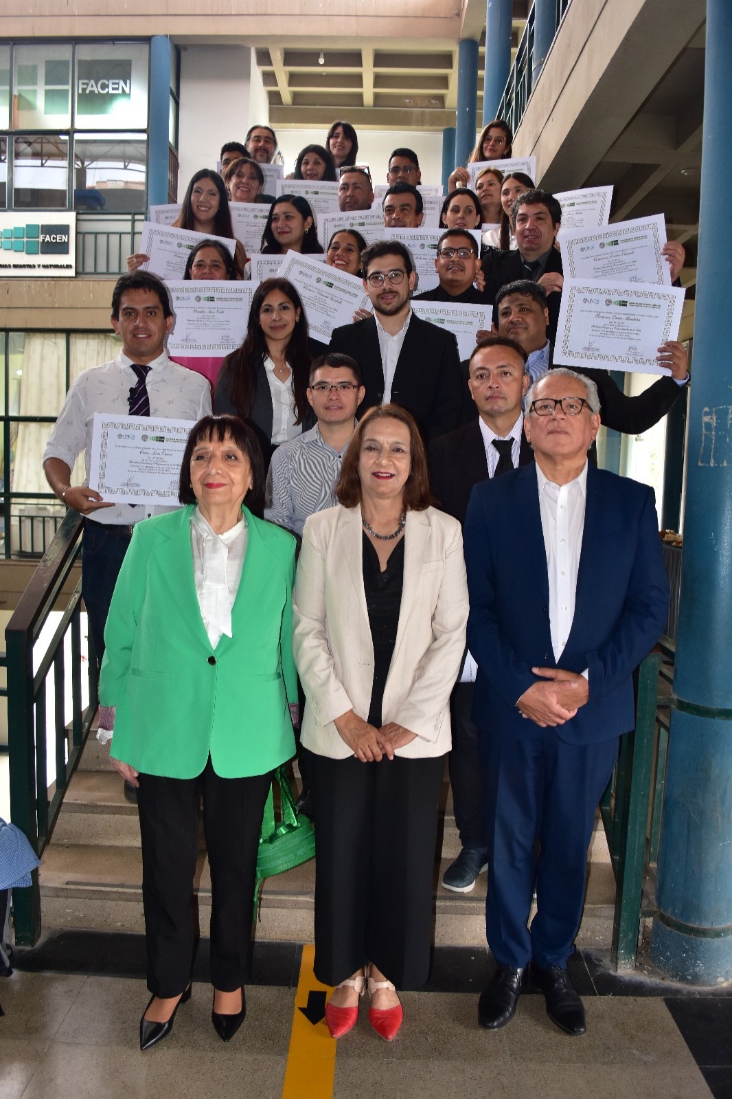 El acto contó con la presencia de la decana de la FACEN, Lic. María Beatriz López; la vicerrectora de la UNCA, Dra. Elina Silvera de Buenader; el ministro de Ciencia e Innovación, Lic. Isauro Molina; egresados y sus familiares y amigos.