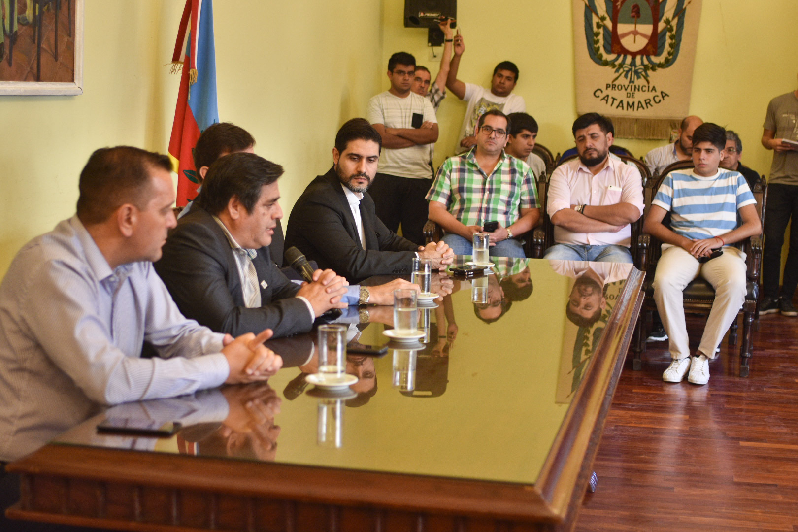 Los ministros Marcelo Rivera (Gobierno), Guillermo Dalla Lasta (Servicios Públicos) y Sebastián Veliz (Hacienda) junto al director de Transporte, Guillermo Matterson, destacaron el trabajo en conjunto.
