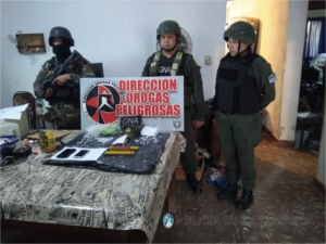 En la mañana de hoy, a las 06:00, como corolario de una minuciosa y ardua tarea investigativa llevada a cabo de manera conjunta entre efectivos de la Dirección Drogas Peligrosas de la Policía de la Provincia y personal de la Unidad de Investigaciones y Procedimientos Judiciales de la Agrupación VIII Catamarca de Gendarmería Nacional Argentina, se materializaron allanamientos simultáneos en distintas viviendas de la Ciudad Capital y de Valle Viejo, dispuestos por el Juzgado Federal a cargo del Dr. Miguel Ángel Contreras, Secretaría del Dr. Luis Alberto Baracat.