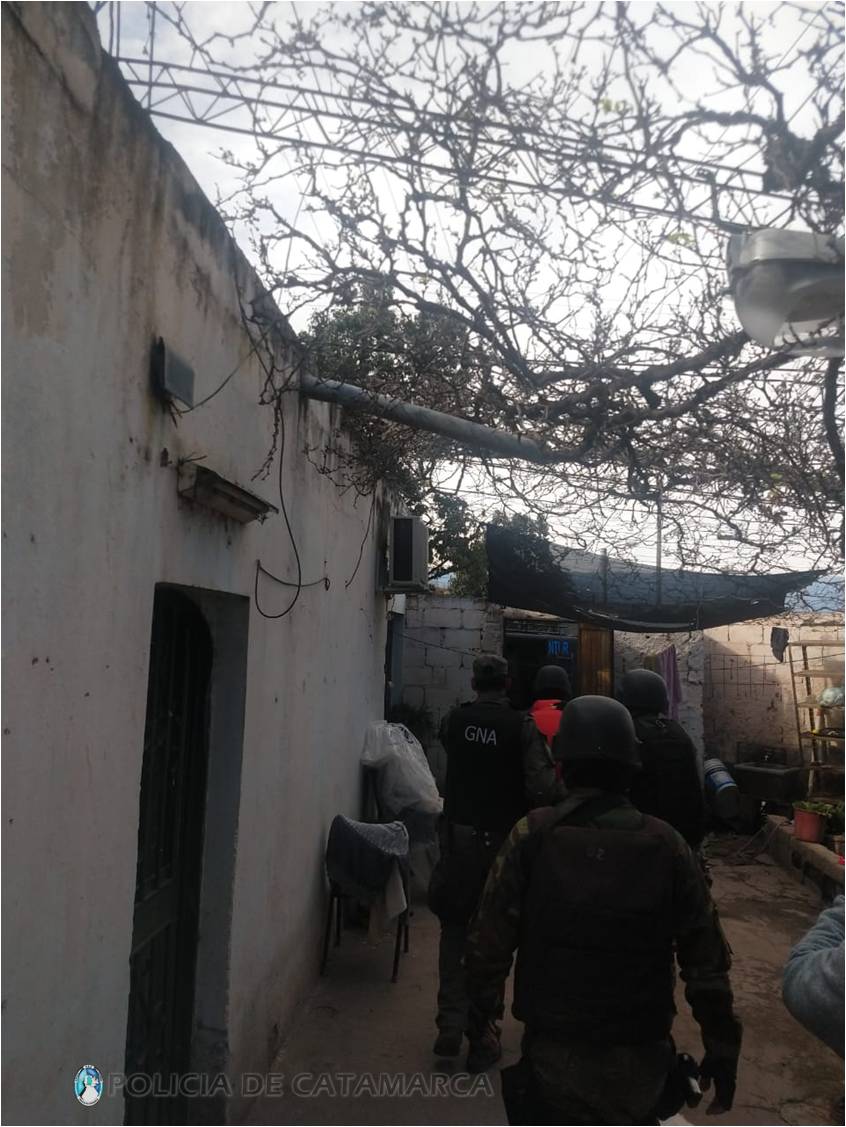 En la mañana de hoy, a las 06:00, como corolario de una minuciosa y ardua tarea investigativa llevada a cabo de manera conjunta entre efectivos de la Dirección Drogas Peligrosas de la Policía de la Provincia y personal de la Unidad de Investigaciones y Procedimientos Judiciales de la Agrupación VIII Catamarca de Gendarmería Nacional Argentina, se materializaron allanamientos simultáneos en distintas viviendas de la Ciudad Capital y de Valle Viejo, dispuestos por el Juzgado Federal a cargo del Dr. Miguel Ángel Contreras, Secretaría del Dr. Luis Alberto Baracat.