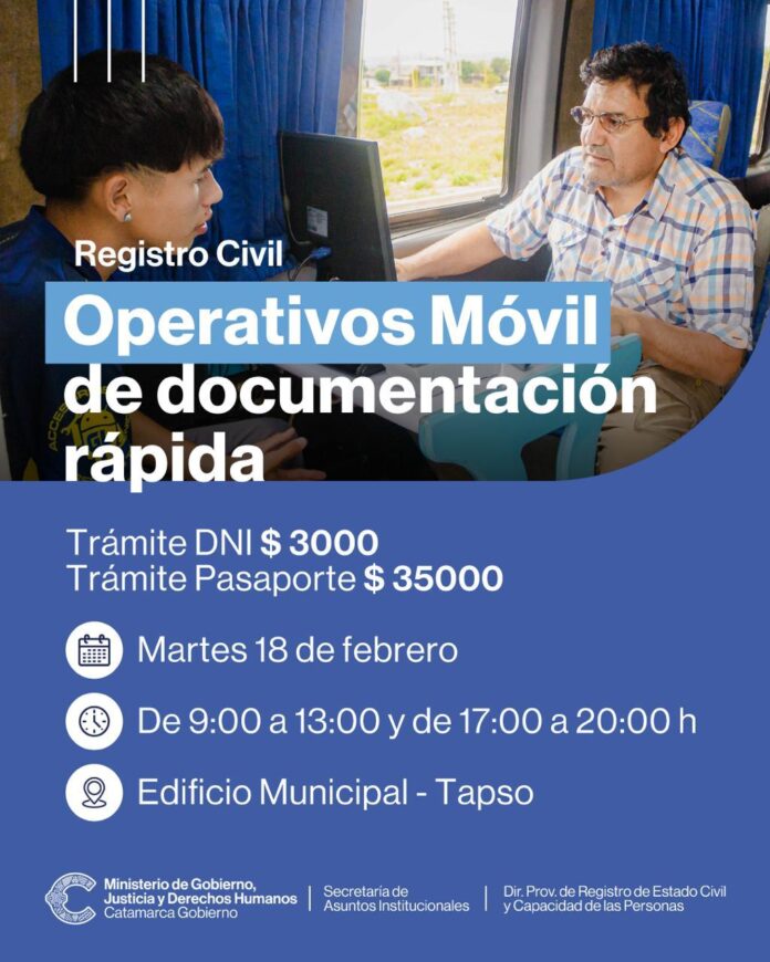De esta manera, el martes 18 de febrero de 9 a 13 y de 17 a 20hs, el operativo se realizará en el Edificio Municipal de Tapso. Por otra parte, el miércoles 19 de febrero de 9 a 15hs, el mismo se desarrollará en el Edificio Municipal de El Alto.
