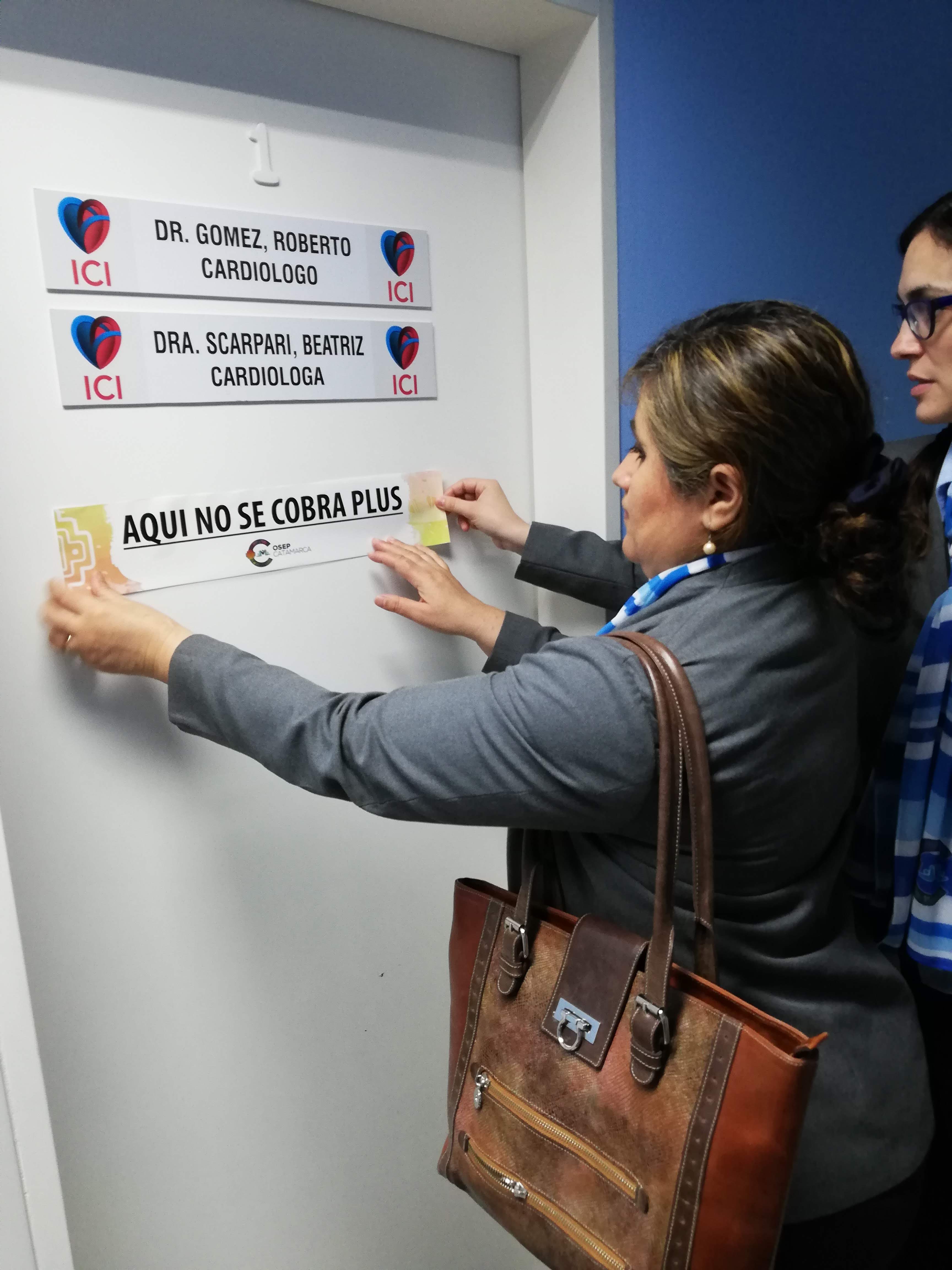 Posteriormente, las trabajadoras recorrieron los diferentes consultorios y colocaron los stickers identificatorios así como también realizaron la entrega de folletería y explicaron a los afiliados que se encontraban en el lugar sobre las diferentes alternativas disponibles para realizar la denuncia por el cobro del plus médico.