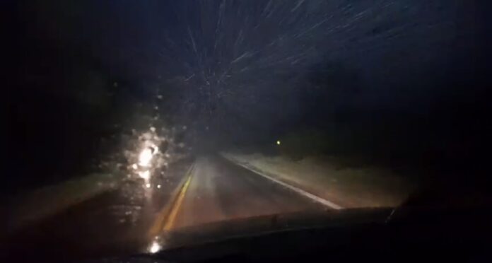 La visibilidad es reducida y hay algunos desprendimientos menores en borde de calzada. Se recomienda disminuir la velocidad habitual y encender luces bajas.