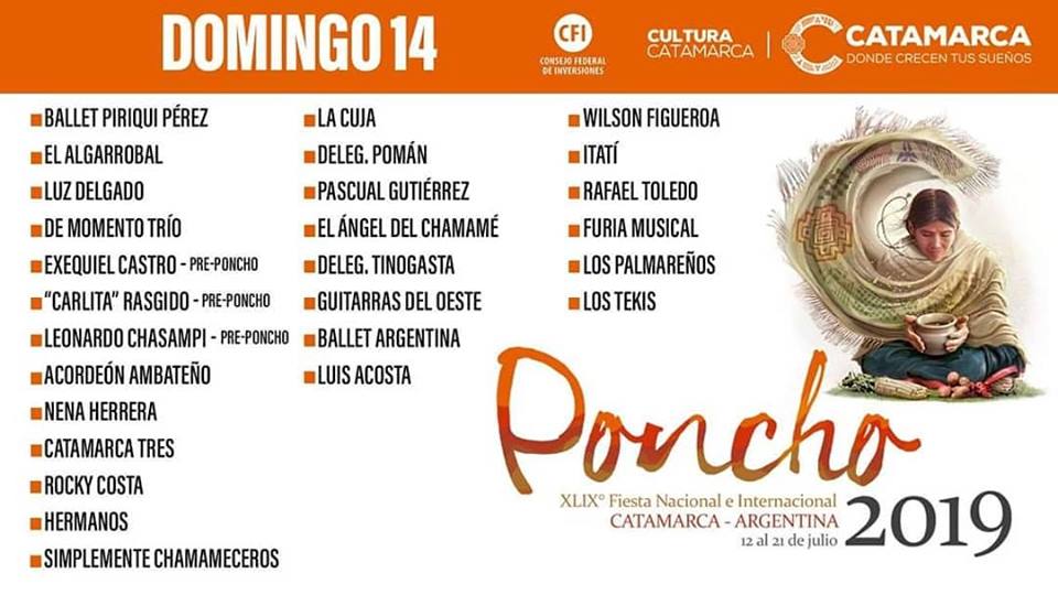 Hoy, desde las 20.00, se llevará a cabo la 3ra velada artística en el escenario Mayor de la Fiesta Nacional del Poncho 2019.