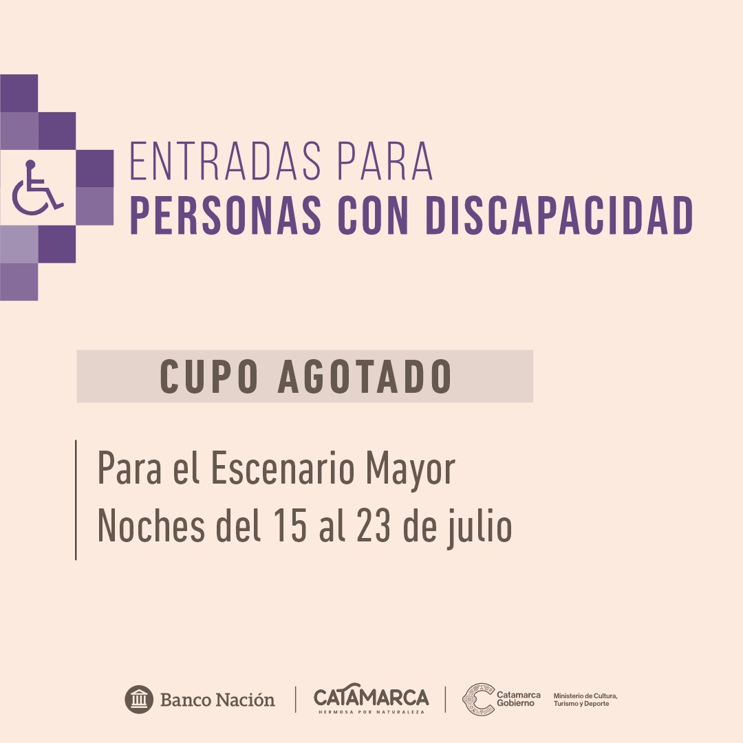 La organización de la Fiesta Nacional e Internacional del Poncho comunica que en la primera jornada se completó el cupo de entradas gratuitas para personas con discapacidad para el festival del Escenario Mayor.