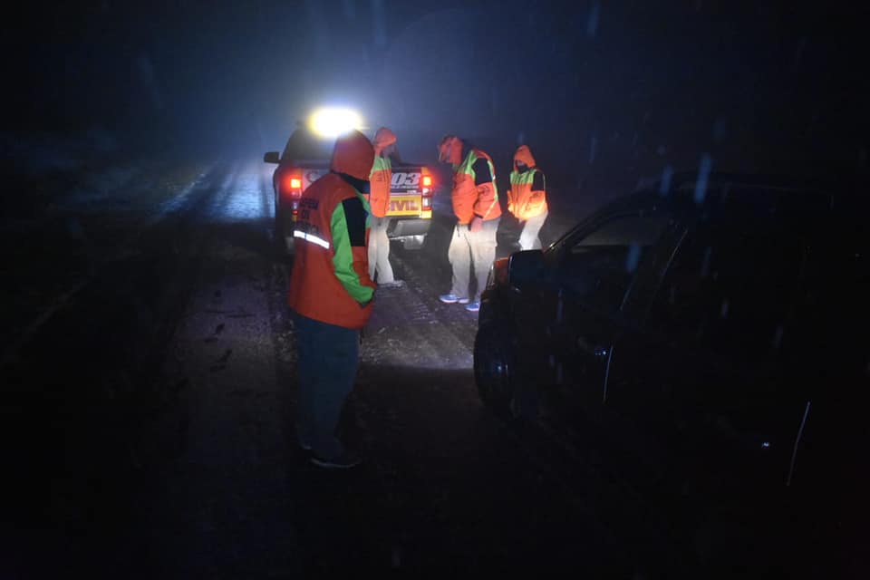 Anoche, personal de Defensa Civil realizó un recorrido preventivo en la cumbre del Cerro Ancasti por la intensa nevada caída.