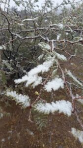 Durante las primeras horas de esta mañana, una tenue nevada se registró en el Pueblo Perdido de la Quebrada a tono con las bajas temperaturas registradas durante la jornada y que generó la insólita postal en varias localidades catamarqueñas.
