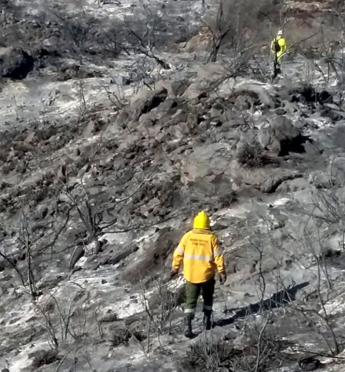La Brigada de Lucha Contra Incendios Forestales, continúa con una cuadrilla apostada en la localidad de Humaya Grande de Ambato, monitoreando de manera permanente el incendio de pastizal desatado en el cerro donde limitan los departamentos Andalgalá, Pomán y Ambato.