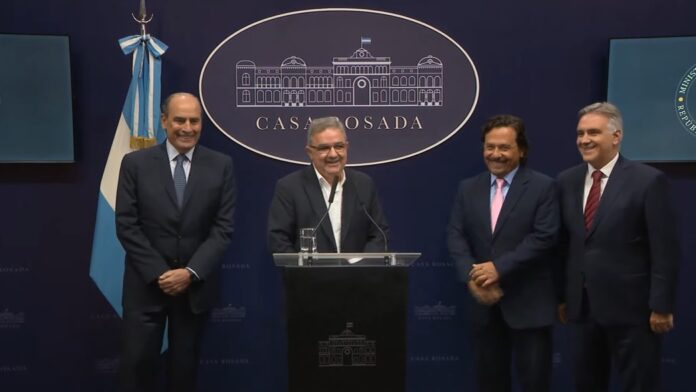 En la reunión que se realizó al mediodía en Balcarce 50, estuvieron además de los 23 gobernadores, el jefe de Gobierno, Jorge Macri; y el ministro del Interior, Guillermo Francos; el jefe de Gabinete, Nicolás Posse; la Secretaria General de la Presidencia, Karina Milei; la vicepresidenta, Victoria Villarruel; y el titular de la Cámara de Diputados, Martín Menem.
