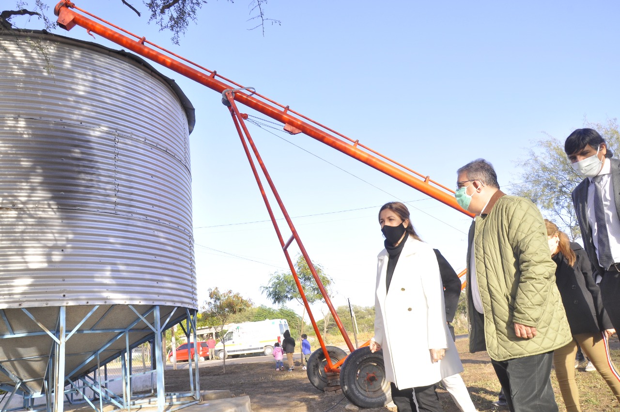 La actividad fue en la localidad chacarera de Las Tejas, donde la intendenta hizo entrega de 10.000 kg de maíz, además del motor para el funcionamiento óptimo del silo que desde hace tiempo se encontraba en desuso.