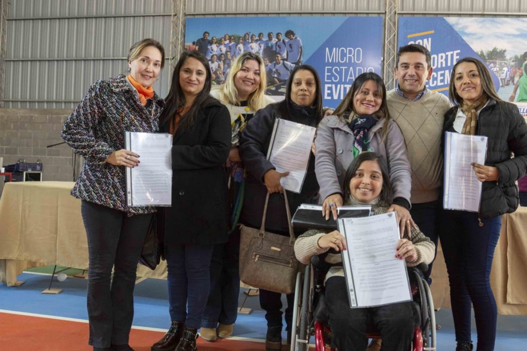 Con el “Evita” colmado, Ferreyra, acompañado por todo su gabinete, la concejal Susana Acosta y el empresario Ramón “Roly” Guerrero, entregaron los decretos de recategorización a los 770 empleados de las distintas áreas de la comuna.