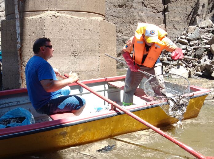 Con el trabajo conjunto de los operarios, se lograron extraer entre 6.000 y 8.000 peces aproximadamente de diferentes tamaños y especies, como pejerrey y carpas.