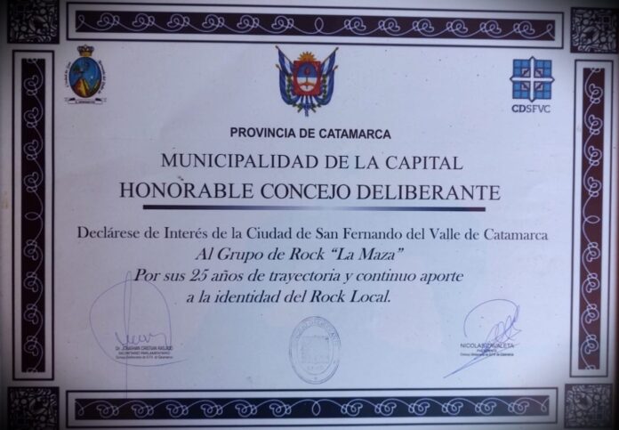 El Concejo Deliberante de la Capital, declaró de «Interés» a la Banda de Rock «La Maza» por sus 25 años de trayectoria.