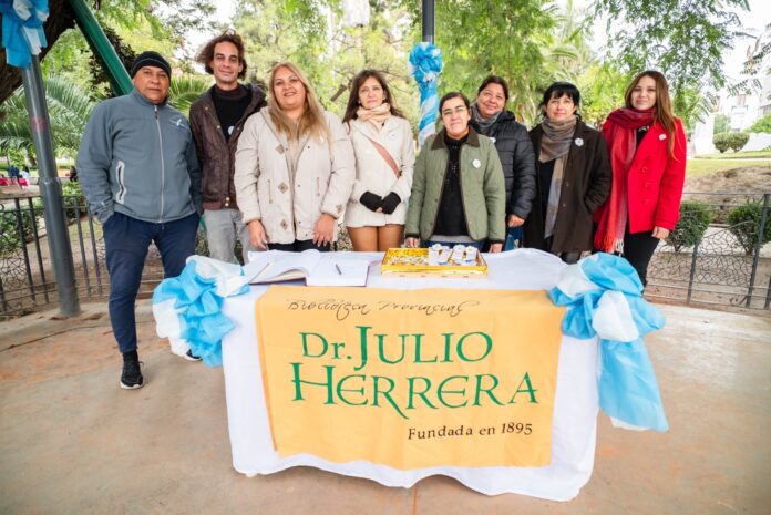 En la víspera del 129º aniversario de la biblioteca provincial Dr. Julio Herrera, este viernes se llevó a cabo un evento alusivo en la glorieta de la Plaza 25 de Mayo, donde se conformó un sector de lectura con información cultural, institucional y literaria, también repartieron escarapelas en referencia a la fecha patria en coincidencia con el aniversario de la biblioteca.