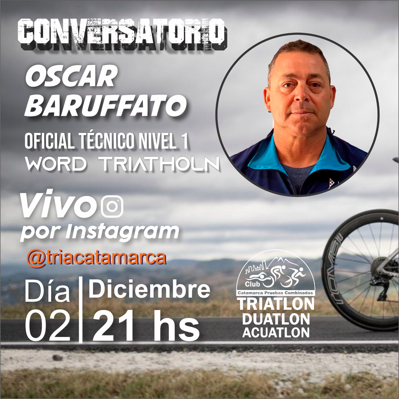 Hoy, 2 de diciembre a las 21 horas a través de un vivo de Instagram, Oscar Baruffato, Oficial técnico nivel 1 Word Triatholn, realizará una conversación con deportistas respecto a las reglas y al reglamento que rigen las competencias de Triatlón; un deporte de resistencia que combina natación, ciclismo y carrera a pie, realizadas en ese orden y sin interrupciones entre una y otra.