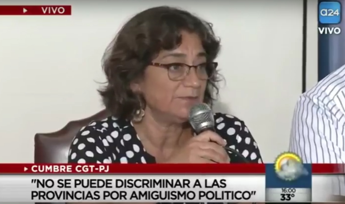 La presidenta del PJ Catamarca señaló al concluir la reunión: «Quiero agradecer a los compañeros de la CGT por esta reunión y por compartir visiones de la preocupación que tenemos sobre nuestro país. Esto tienen que ver con la preocupación que vemos en cada una de las provincias en la caída de empleos, en las fábricas de pequeñas y medianas empresas; en todos aquellos empresarios que nos han manifestado su preocupación de no poder seguir sosteniendo los puestos de trabajo con el incremento tarifario y con el incremento de combustible. Y les plenteábamos además a los compañeros de la CGT, que quienes tenemos además la responsabilidad de gobernar nos vemos en una situación muy compleja, porque vamos a tener que discutir paritarias en nuestras provincias -empezamos siempre con las paritarias docentes- en un contexto donde el Gobierno nacional se ha retirado de paritarias y en donde las provincias verdaderamente no tenemos recursos para aumentar lo que creemos que genuinamente los trabajadores nos reclaman. Si no tenemos ayuda del Gobierno nacional, este aumento de salarios tal como lo piden los trabajadores o intentando acercarnosa sus necesidades es imposible. Y le pedimos también al Gobierno nacional que esta ayuda sea equitativa y para todas las provincias, porque con solo mirar lo que son las ayudas en el Boletín Oficial a las distintas provincias vemos que algunas son altamente beneficiadas y otras no hemos recibido absolutamente nada. Esta convocatoria que hacen los compañeros de la CGT es para que nos movilicemos todos los argentinos en reclamo de la protección de nuestros puestos de trabajo».