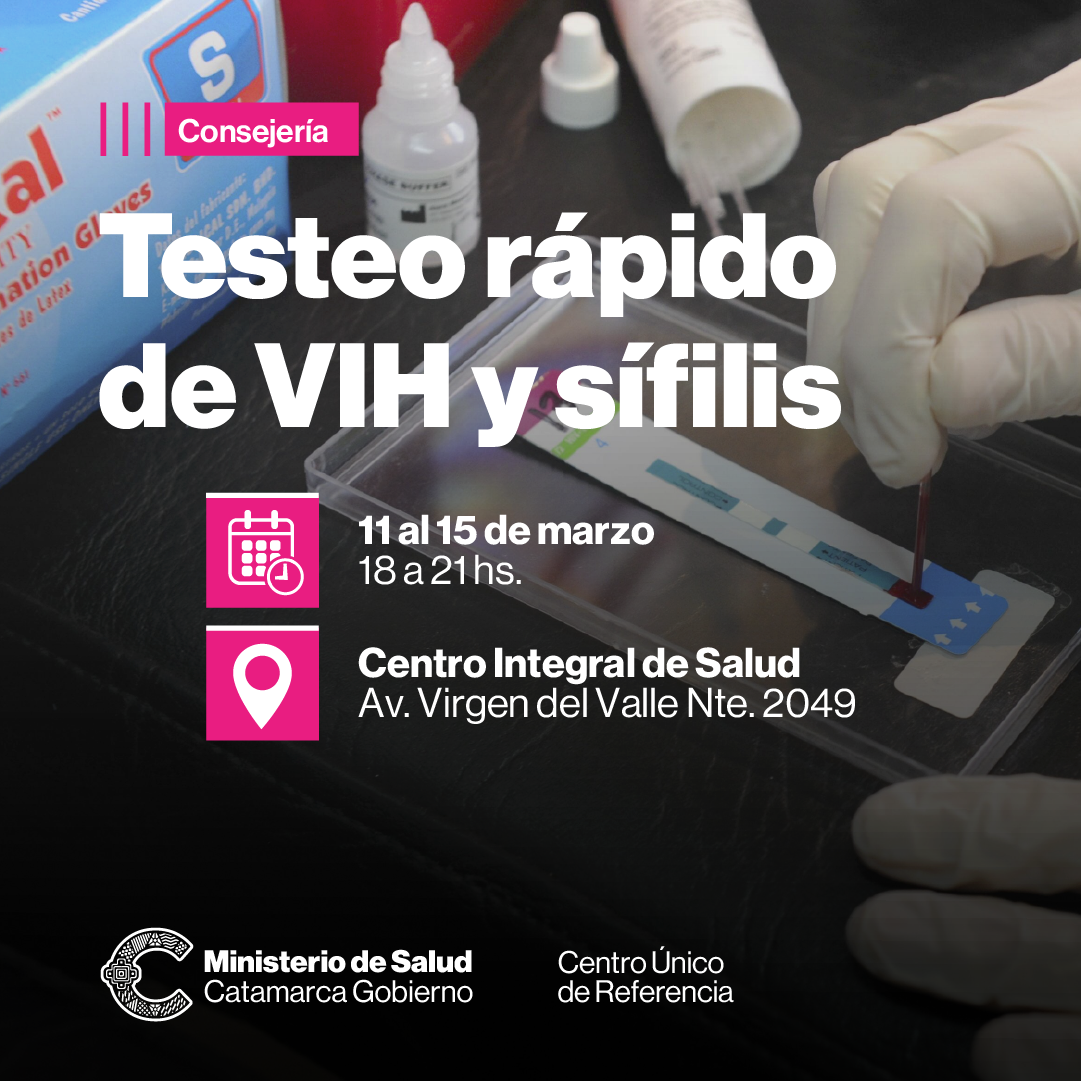 Con el objetivo de brindar información y una rápida detección, el Ministerio de Salud a través del Centro Único de Referencia realizará nuevamente esta semana testeos de VIH y Sífilis y consejerías.