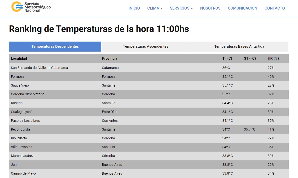 En segundo lugar se ubica la capital de Formosa con 35.1 grados.