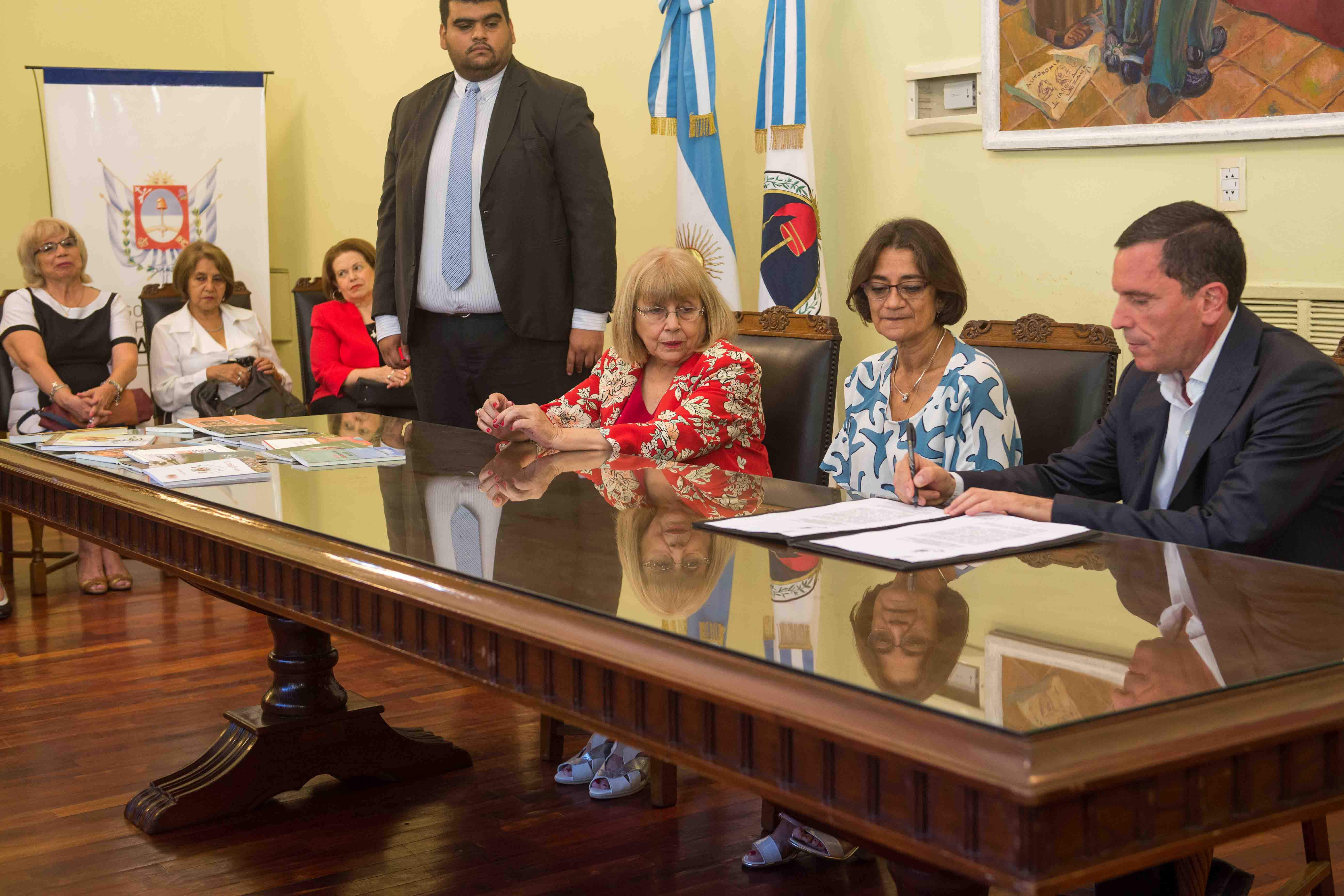 La firma tuvo lugar entre el secretario de Vivienda, Fidel Saenz, y la presidenta de la SADE filial Catamarca, la escritora Hilda Angélica García.