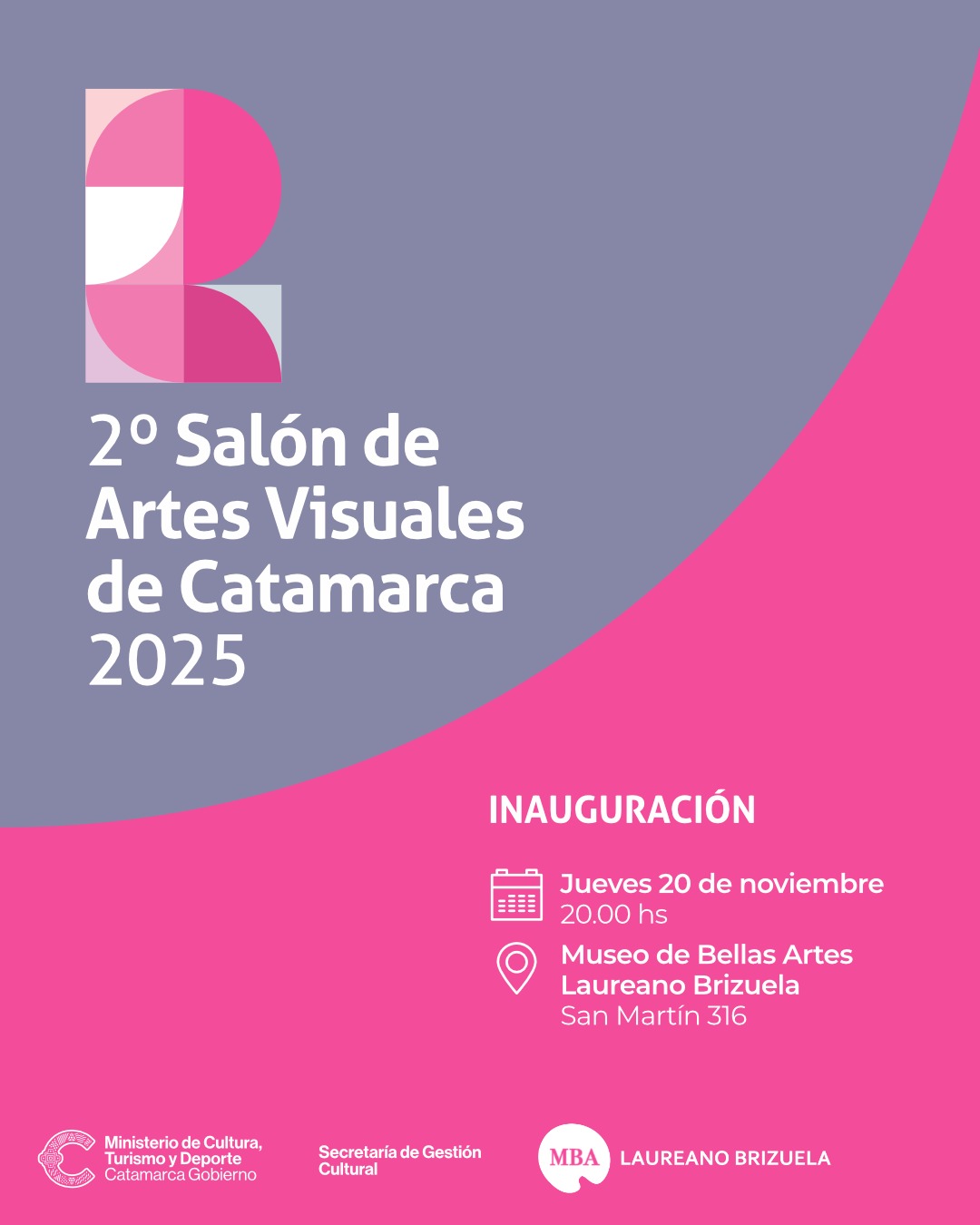 Este próximo jueves 20 de noviembre, a las 20 horas, en el Museo de Bellas Artes Laureano Brizuela (San Martín 316), se inaugurará la muestra correspondiente al 2° Salón Provincial de Artes Visuales de Catamarca.