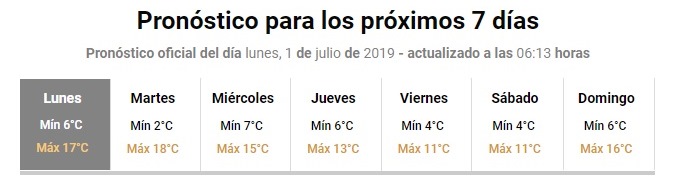 El pronóstico extendido del SMN marca que desde el jueves la temperatura máxima no superará los 13°C.