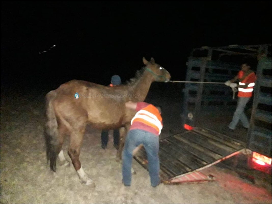 Asimismo, en la ruta provincial N° 4, a la altura del ingreso al Puesto “El Viscote”, de la localidad de El Rodeo, Departamento Ambato, los Policías hicieron lo propio con un (01) caballo pelaje tostado listado, miembros blancos, marca de fuego no visible, en cumplimiento a lo normado por la Ley Nº 4851/95.