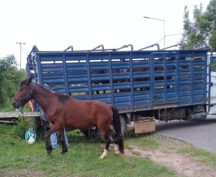 Durante la mañana y la tarde de ayer, mientras personal de la Subcomisaría de Balcozna, dependiente de la Jefatura de Zona Norte de la Unidad Regional N° 1 realizaba recorridos de prevención, en la ruta provincial N° 9, en el tramo que va desde el Puesto El Rosario hasta El Puesto La Atravesada y Balcozna de Afuera, Departamento Paclín, conjuntamente con personal de la División Policía Montada procedieron al secuestro de una (1) yegua de pelaje lobuno frontino, pico blanco, sin marca de fuego visible, un (1) caballo colorado, con marca de fuego en pierna izquierda EO/1, una (1) potranca de pelaje zaino frontino, con miembro anterior y posterior izquierdo de color blanco, marca de fuego en pierna izquierda (El/80), un (1) caballo colorado listado, con miembros posteriores de color blanco, sin marca de fuego visible, un (1) caballo de pelaje tuco frontino, con marca de fuego en pierna izquierda (EI/80), y en pierna derecha marca de fuego (V), con signos aparentes de haber sido picado por un enjambre de abejas, un (1) caballo colorado con marca de fuego en pierna izquierda (El/80), y un (1) potrillo de pelaje picazo, sin marca de fuego visible, en cumplimiento a lo normado por la Ley Nº 4851/95.