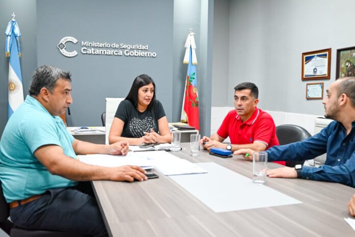 La ministra de Seguridad de la provincia, Dra. Fabiola Segura, encabezó una reunión de trabajo junto al jefe de Policía, Crio. Gral. Ulises Córdoba; el jefe de Operaciones, Crio. Pablo Carrizo, y el secretario de Deportes y Recreación, Prof. Guillermo Perna, para continuar la organización conjunta de los operativos de seguridad en el marco del Torneo Regional de Fútbol.