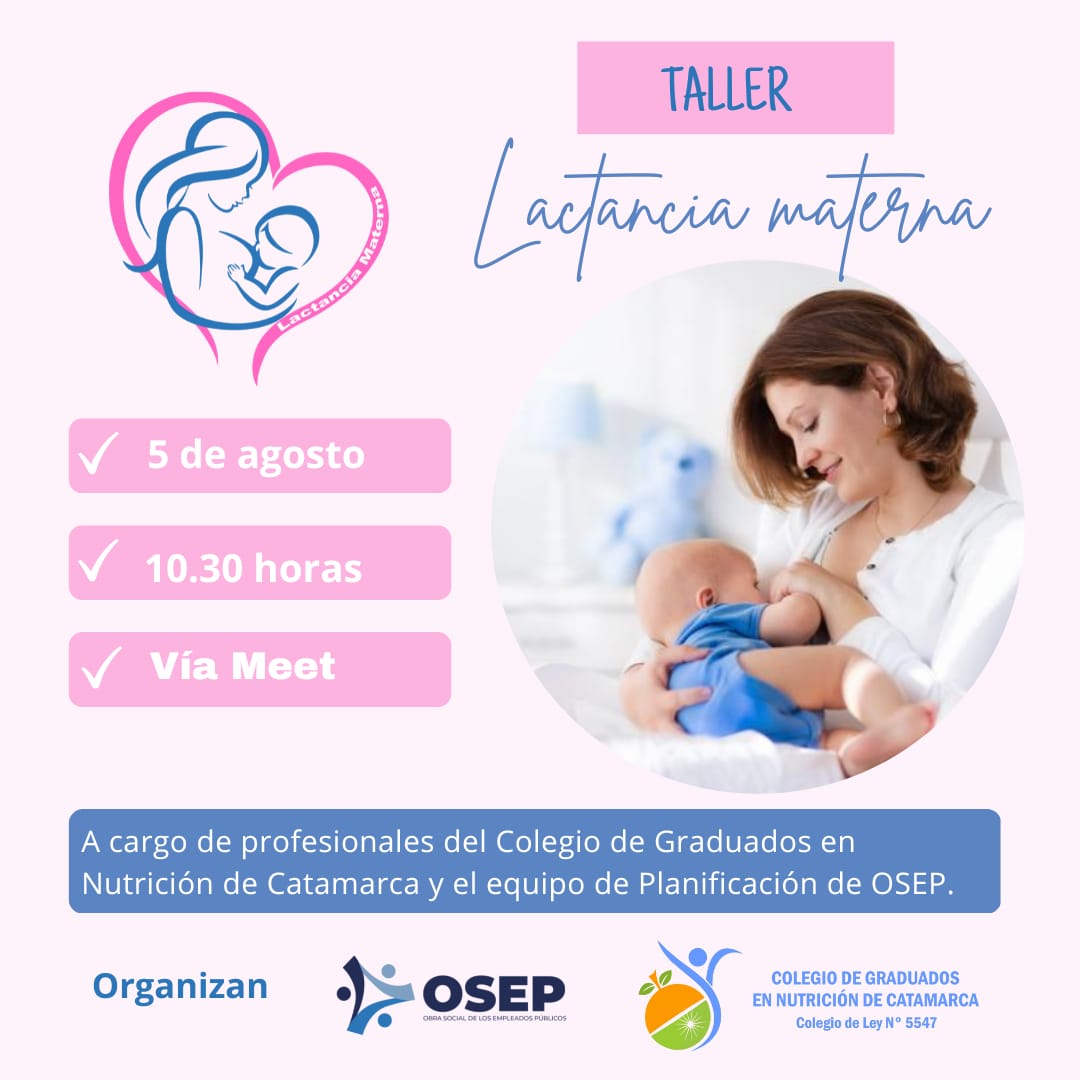 Hoy comienza la semana de la Lactancia Materna y para promocionarla, este viernes 5 de agosto OSEP, en conjunto con el Coleg De Nutricionistas Catamarca, dictará el taller “Claves para amamantar exitosamente”.