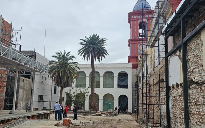 La obra de refacción y restauración en el emblemático edificio continúa en los patios internos, enfocándose en rescatar las características originales del diseño del arquitecto Luis Caravati.