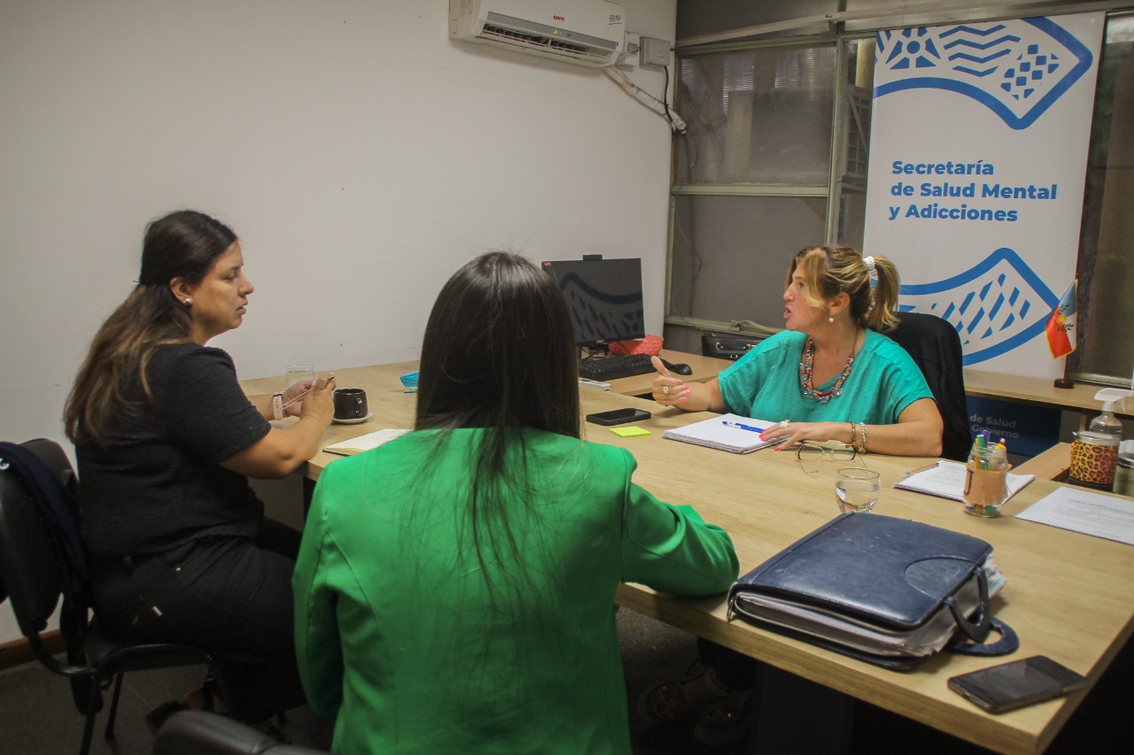 El Ministerio de Salud de la provincia continúa articulando con otros organismos provinciales con el fin de dar respuestas a diferentes situaciones con el fin de generar acuerdos y espacios de trabajo conjuntamente. La secretaria de Salud Mental y Adicciones, Judith Bogomolny se reunió con las referentes de las secretarías de Familia Ivanna Agüero Pacheco; y de Justicia, Derechos Humanos y Género Mara Murua, de los ministerios de Desarrollo Social y Gobierno, respectivamente.