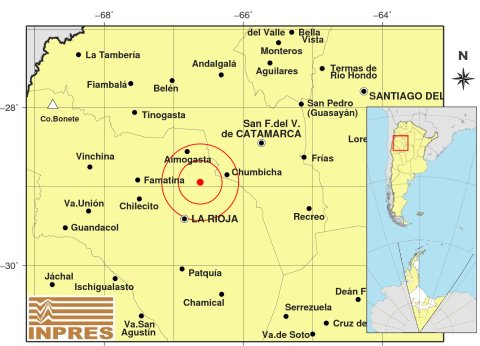 | Sismo calculado automaticamente (sujeto a revisión por un sismólogo) con epicentro en LA RIOJA | ||||||||||||||