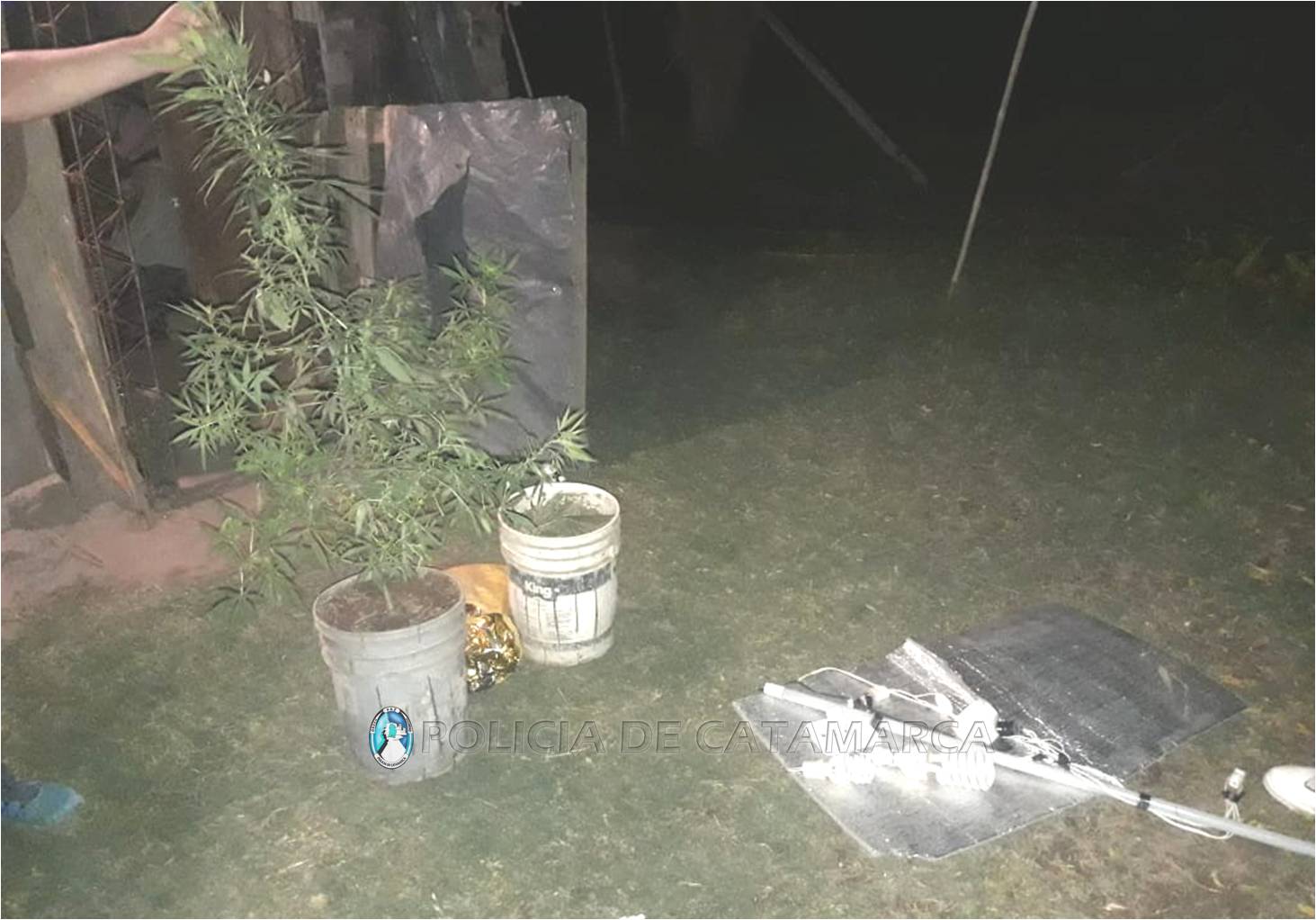 En el lugar, el personal policial interviniente encontró una planta de similares características a las de la variedad Cannabis Sativa, que aparentemente estaba siendo cultivada en el lugar dentro de un recipiente plástico de color blanco, en un vivero casero, por lo que de inmediato solicitaron la presencia de sus pares de la Dirección Drogas Peligrosas de la Policía de la Provincia, quienes realizaron tareas de su especialidad y procedieron al secuestro de una (01) planta de Marihuana de aproximadamente 1,50 metros de altura, luces y distintos elementos utilizados para el funcionamiento del vivero artificial, que quedaron en calidad de secuestro a disposición del Juzgado Federal, desde donde se indicaron las medidas a cumplimentar.