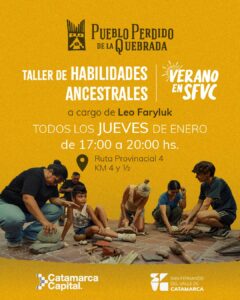 Este jueves, en el Pueblo Perdido de la Quebrada, continuará el ciclo de talleres de habilidades ancestrales que lleva adelante el arqueólogo Leonardo Faryluk mediante charlas y prácticas concretas basadas en la metodología y alcances de la arqueología experimental. Será de 17 a 20 horas y en esta oportunidad el taller estará tematizado sobre “la magia del fuego, técnicas de encendido y medidas de seguridad”.