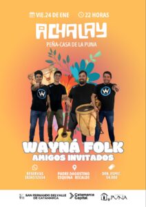Por último, desde las 22 horas, será el momento del gran cierre con la tradicional Peña de la Casa de la Puna que tendrá en esta ocasión la actuación de Wayná Folk y artistas invitados. El derecho de espectáculo tendrá un valor de $4000 (se abona a partir de los 12 años) y para consultas y reservas se pueden comunicar al +54 9 383 451 2654.