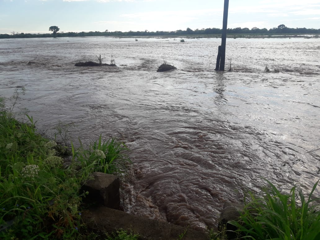 Las precipitaciones intensas generaron que el paso sobre río Manantiales sobre ruta provincial 21 donde la Nación construye un puente alcantarilla permanezca cortado para todo tipo de vehículos debido al aumento del caudal del río.