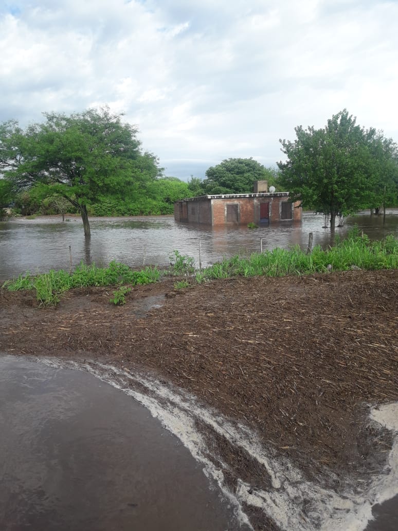 Los barrios Santa Lucía y Las parcelas fueron de los más afectados ya los campos no actúan de contención y dejan pasar el agua a la ruta y posteriormente ingresa a las viviendas del sector.