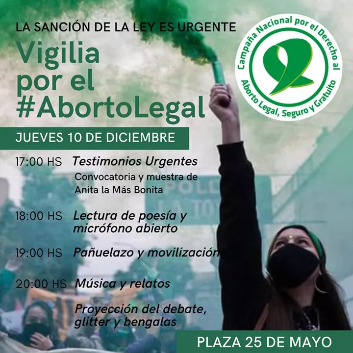 A partir de las 18 habrá lectura de poesía y mensajes a micrófono abierto. A las 19 será el pañuelazo y movilización y luego continuará con música y relatos. A partir de las 20 se podrá seguir el debate en pantalla gigante.