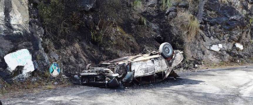 Exequiel Orlando Yáñez (27), circulaba en un automóvil Peugeot 504, dominio XNN-769, de color blanco, acompañado por Micaela Ramírez (24), un adolescente de 17 años, y dos niños de 1 y 7 años de edad, y por razones que se investigan perdió el control del rodado y terminó volcando en la calzada, para luego incendiarse resultando el vehículo totalmente dañado.